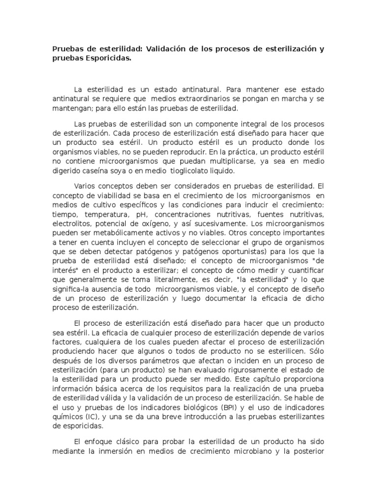 de esterilidad vlida y la validacin de un proceso de esterilizacin. Se hable de