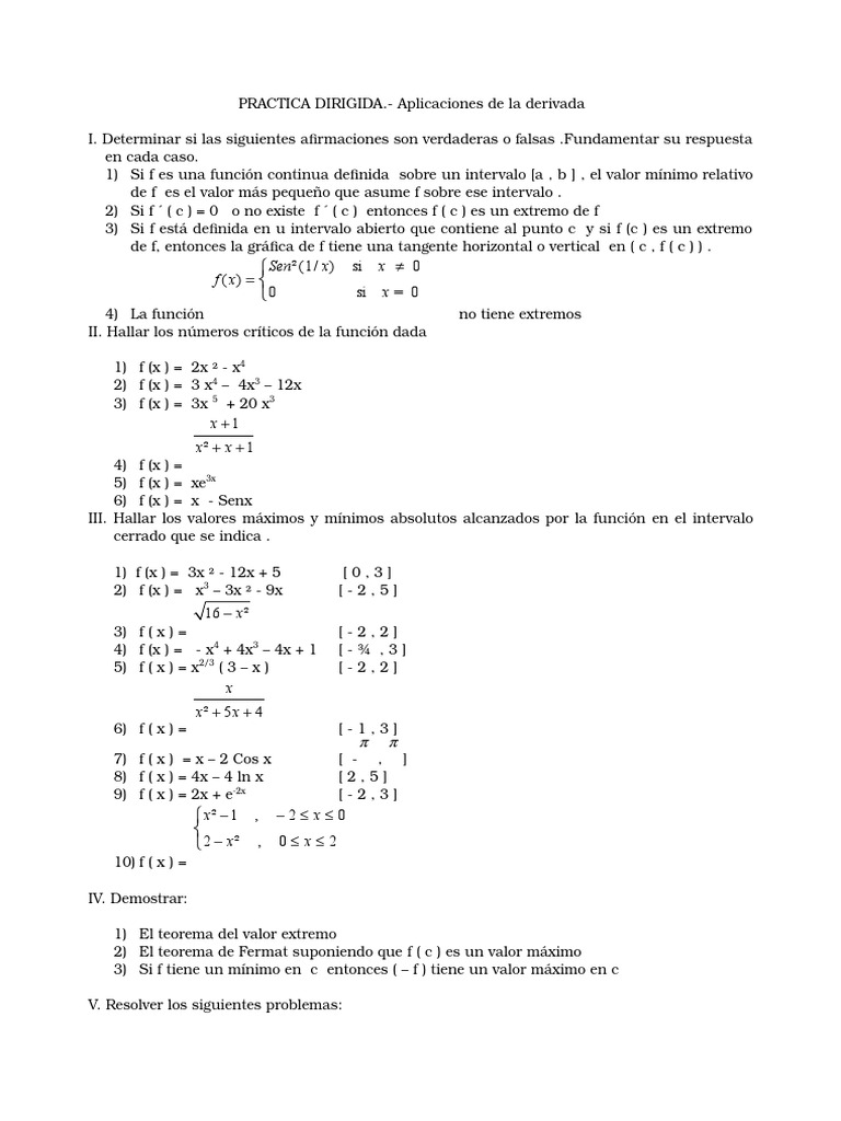 2) Si f ( c ) = 0 o no existe f ( c ) entonces f ( c ) es un extremo de f