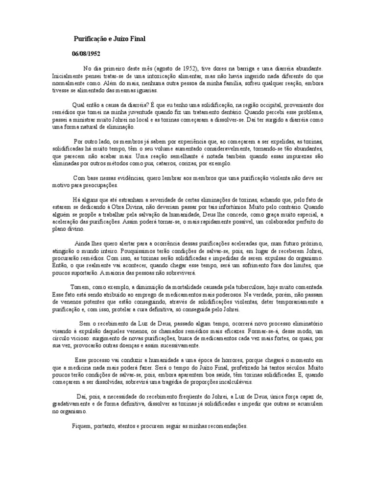passei a ministrar muito Johrei no local e as toxinas comearam a dissolver-se. Da ter surgido a diarria como