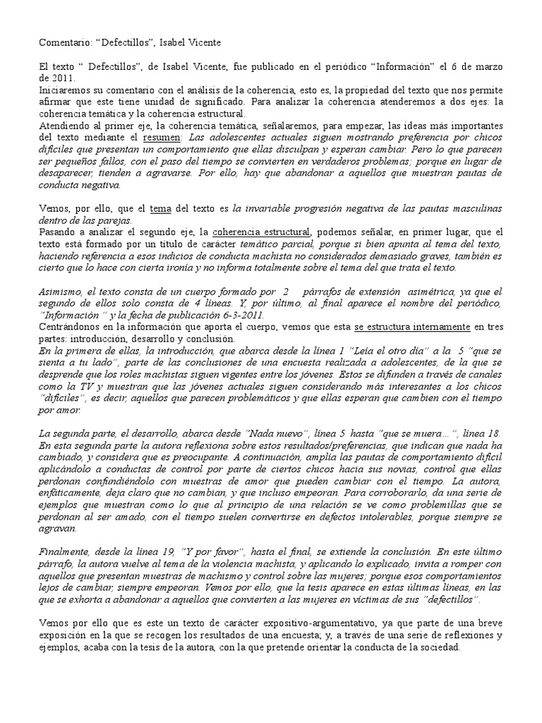 Comentario: Defectillos, Isabel Vicente