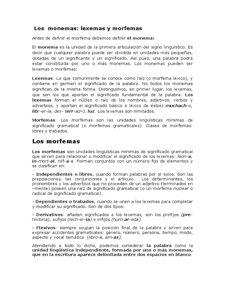 Morfemas: Los morfemas son las unidades lingsticas mnimas de