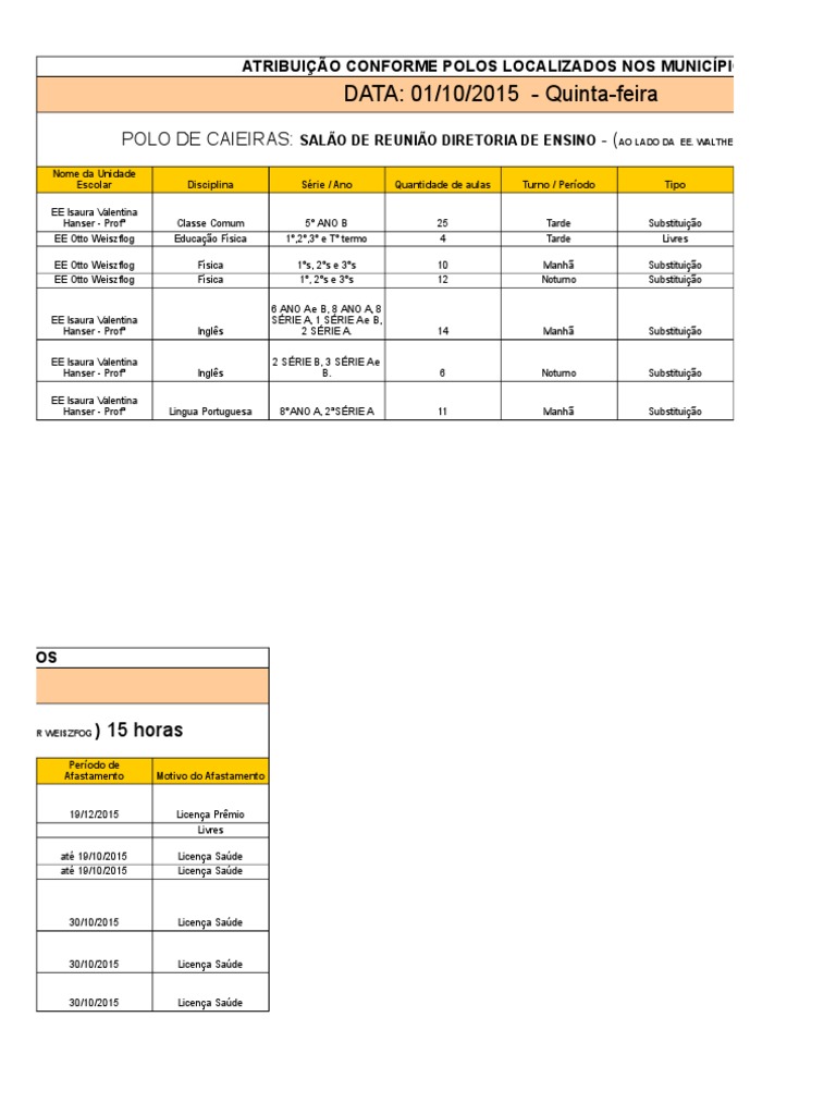 POLO DE CAIEIRAS: SALO DE REUNIO DIRETORIA DE ENSINO - (AO LADO DA EE. WALTHER WEISZFOG ) 15 h