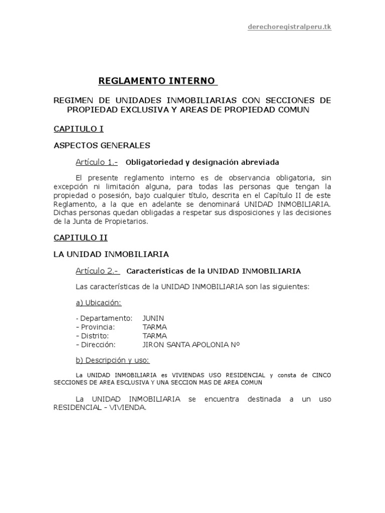 Reglamento, a la que en adelante se denominar UNIDAD INMOBILIARIA.