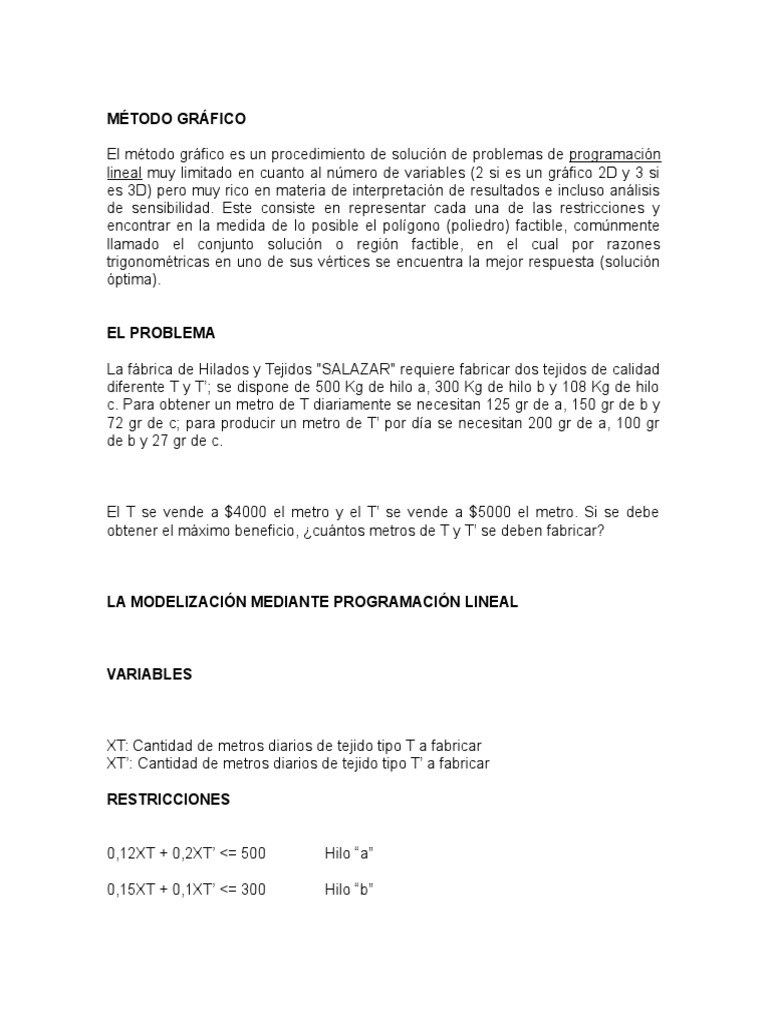Programacin Lineal, siempre y cuando el modelo conste de dos variables. Para