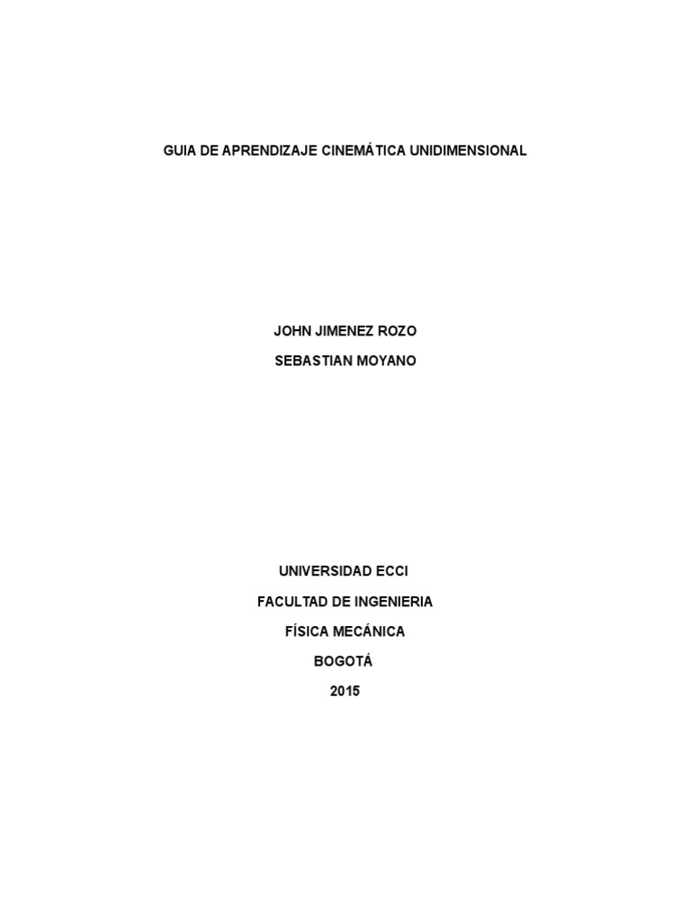 GUIA DE APRENDIZAJE CINEMTICA UNIDIMENSIONAL