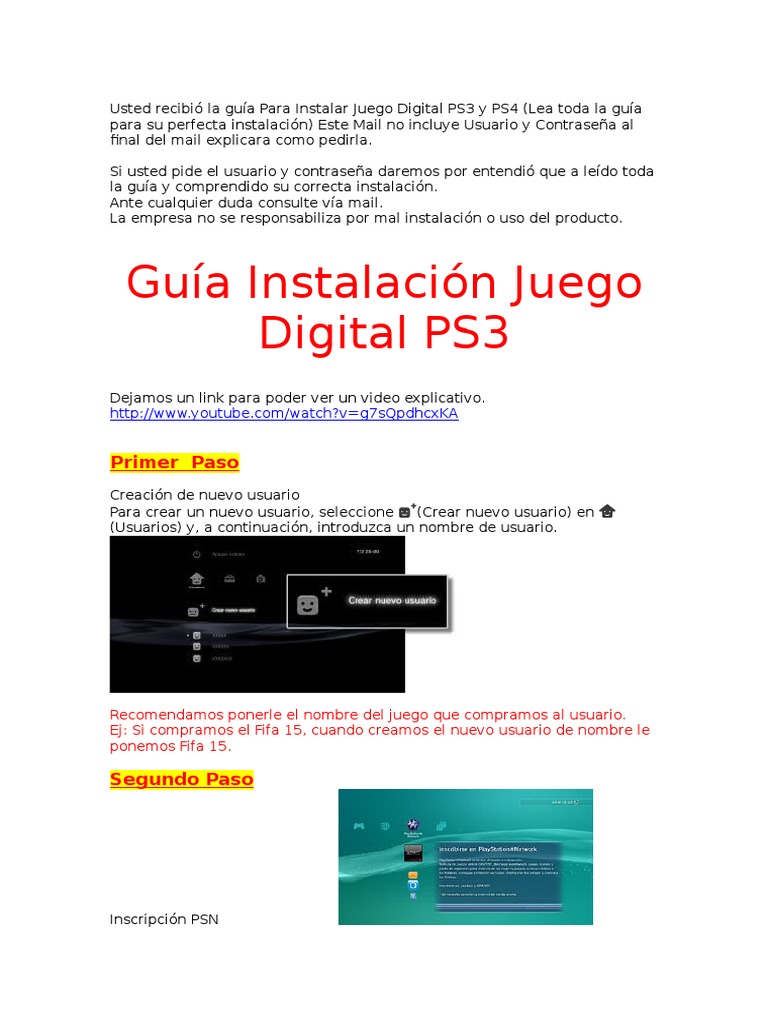 Usted recibi la gua Para Instalar Juego Digital PS3 y PS4 (Lea toda la gua