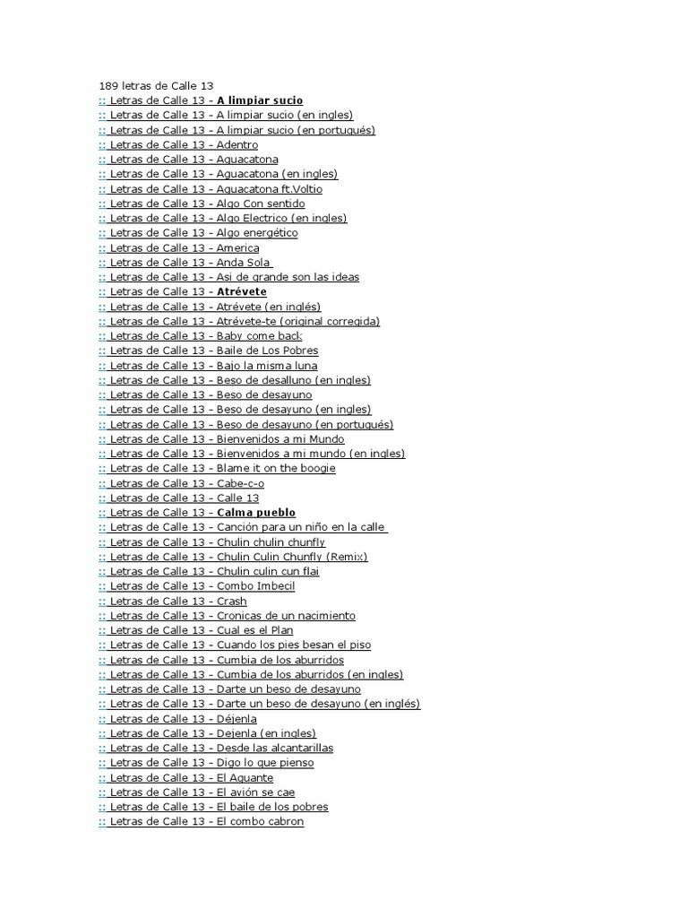 189 letras de Calle 13