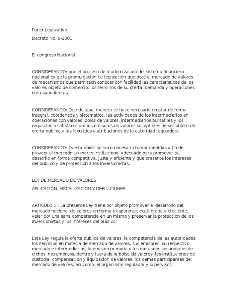 nacional exige la promulgacion de legislacion que dote al mercado de valores