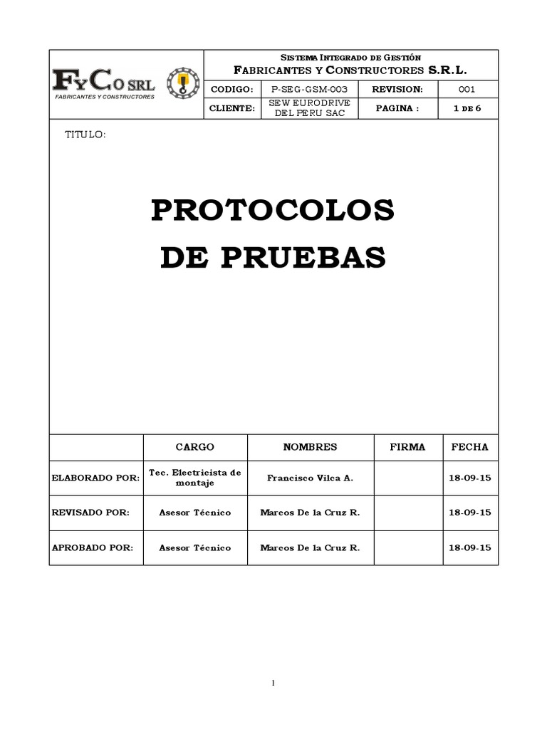 PROTOCOLO DE PRUEBAS