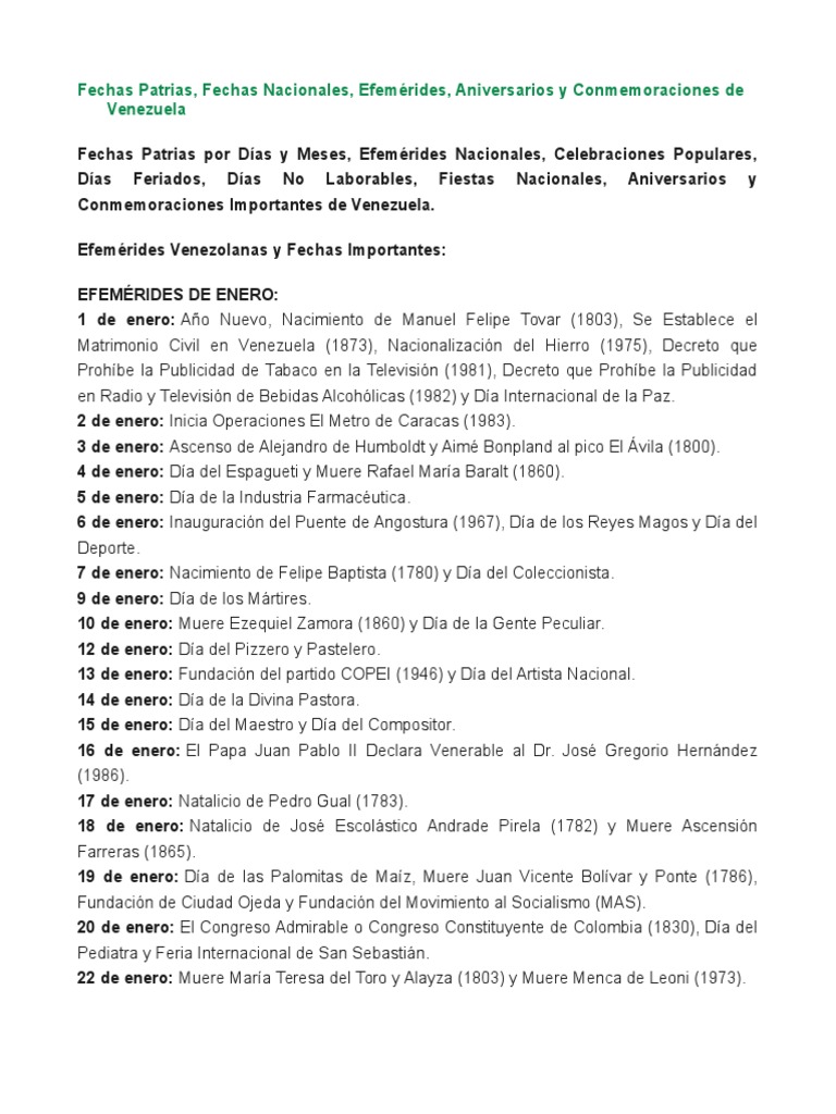 Efemrides Venezolanas y Fechas Importantes: