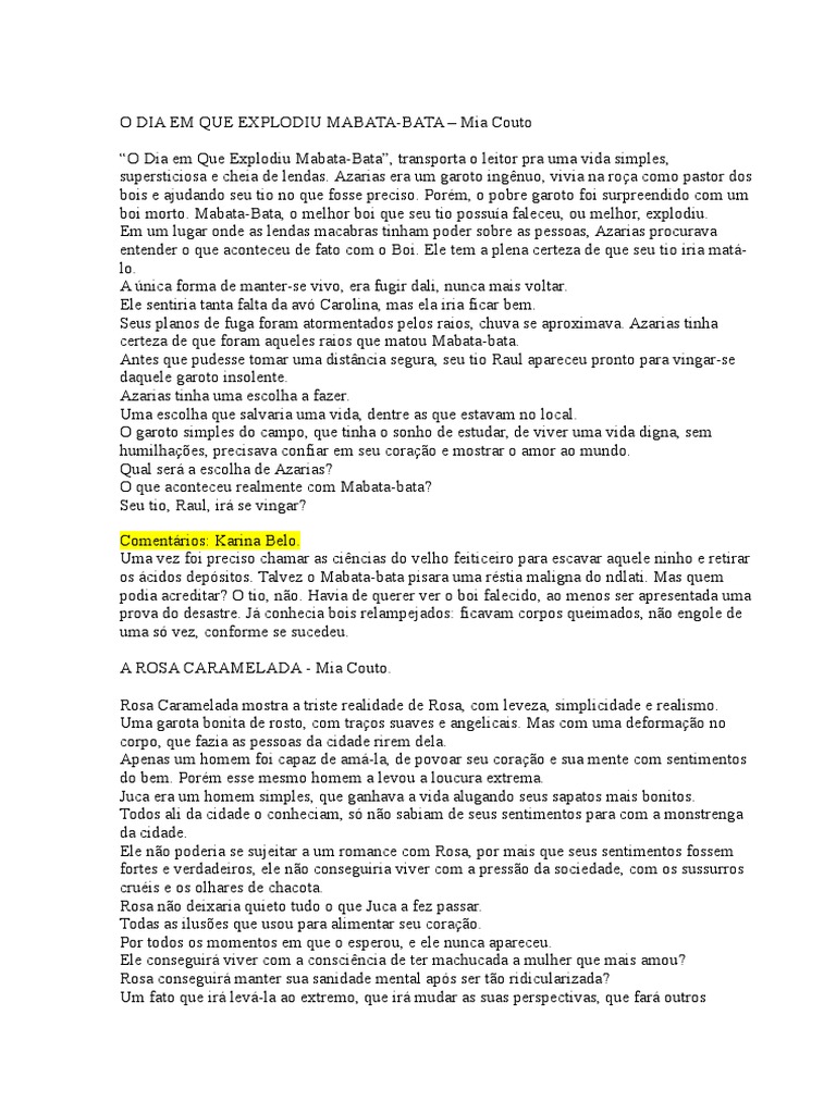 O DIA EM QUE EXPLODIU MABATA-BATA Mia Couto