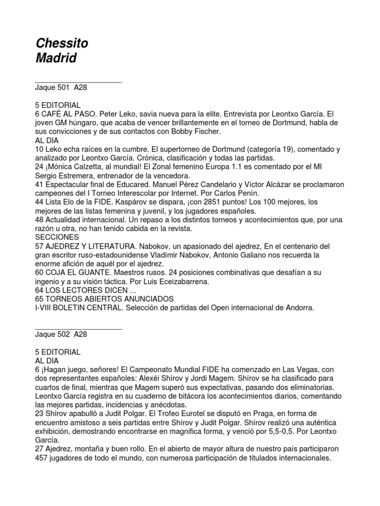 6 CAF AL PASO. Peter Leko, savia nueva para la elite. Entrevista por Leontxo Garca. El