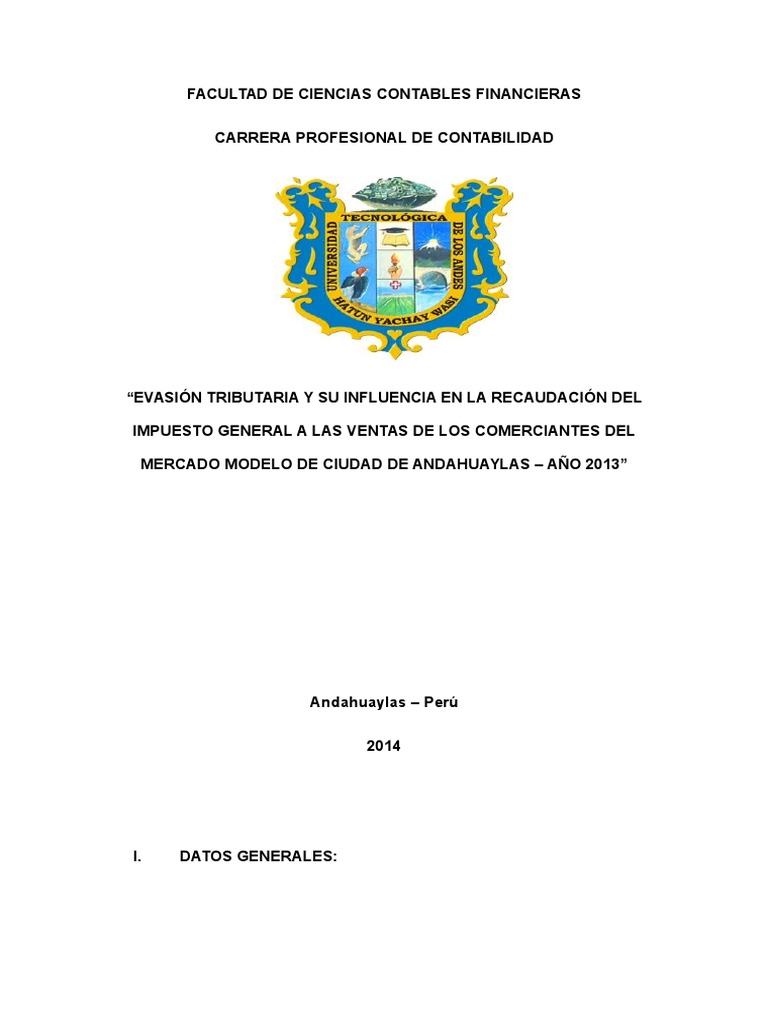 TTULO DEL PROYECTO: Evasin tributaria y su influencia en la