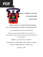 Este canal que se disea con la frmula de Manning, deber tener un ancho y profundidad mnimo, con un