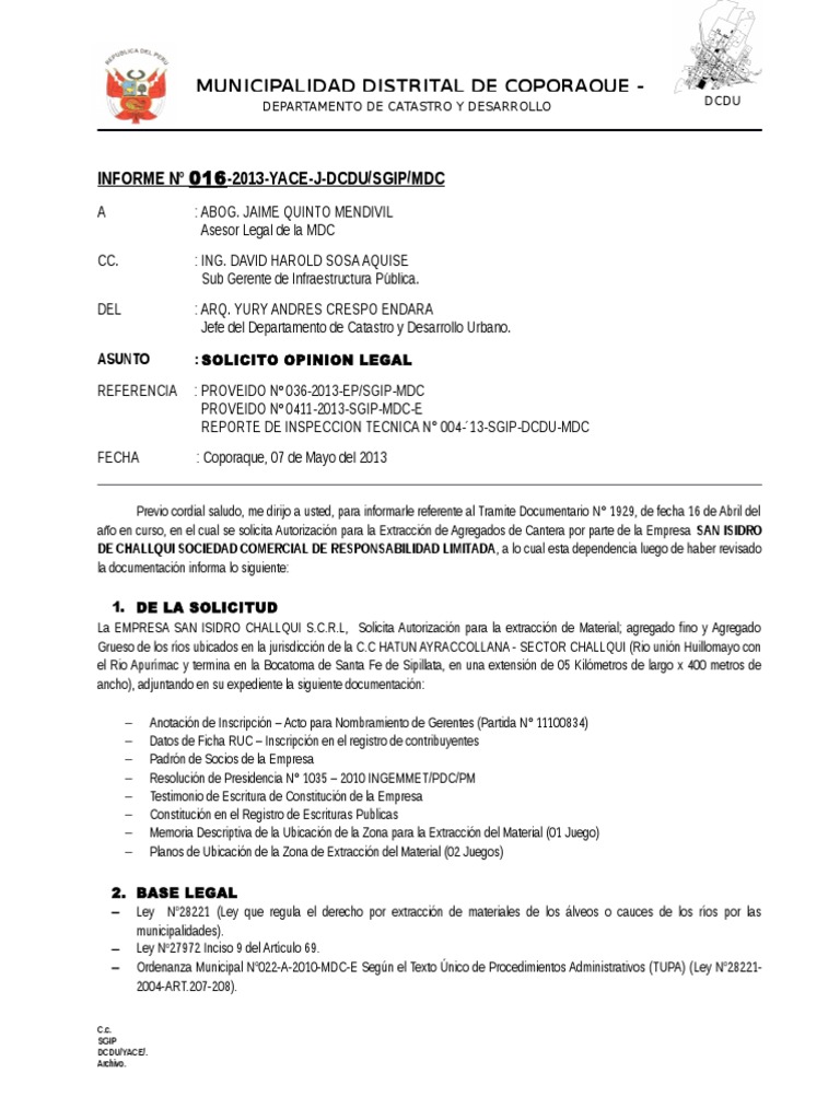 INFORME N 016 -2013-YACE-J-DCDU/SGIP/MDC