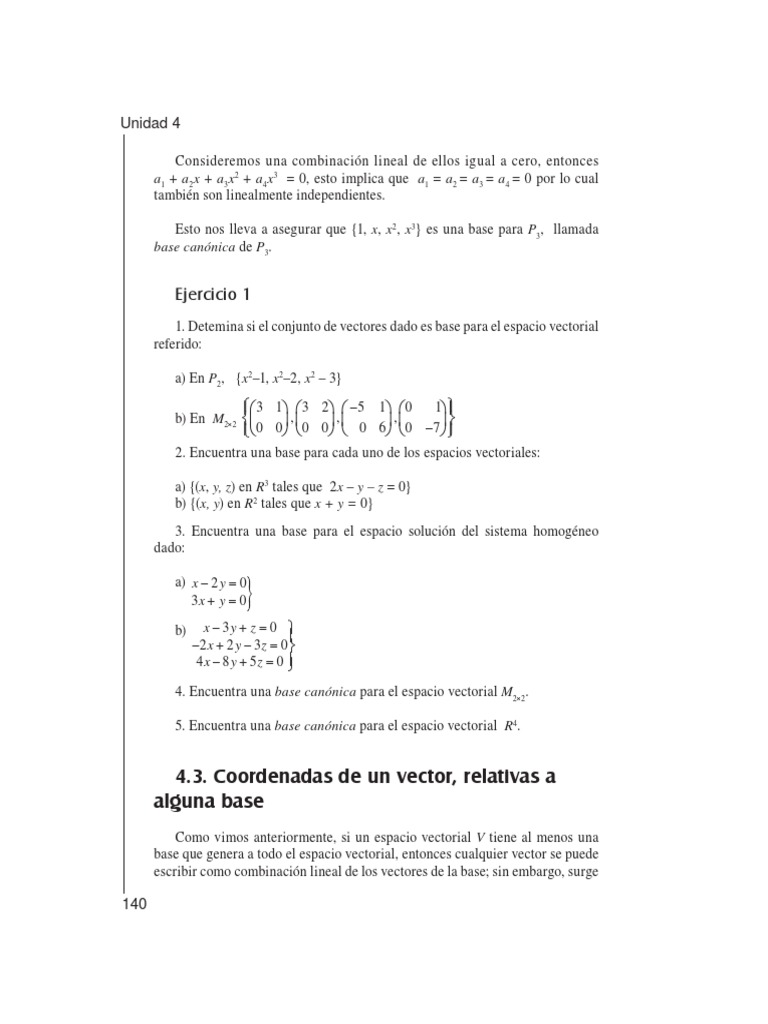 lineal de los vectores de una base es nica. A continuacin veremos algunos