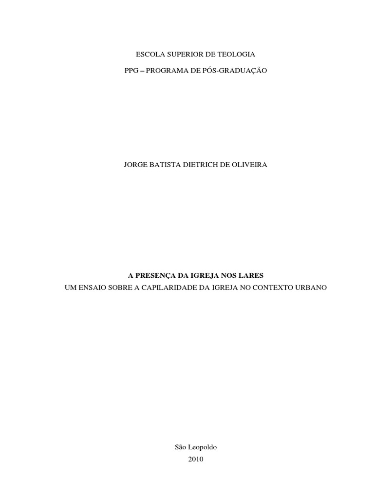 BOBSIN, Oneide (Org.). Desafios urbanos igreja. Estudos de caso. So Leopoldo: Sinodal,