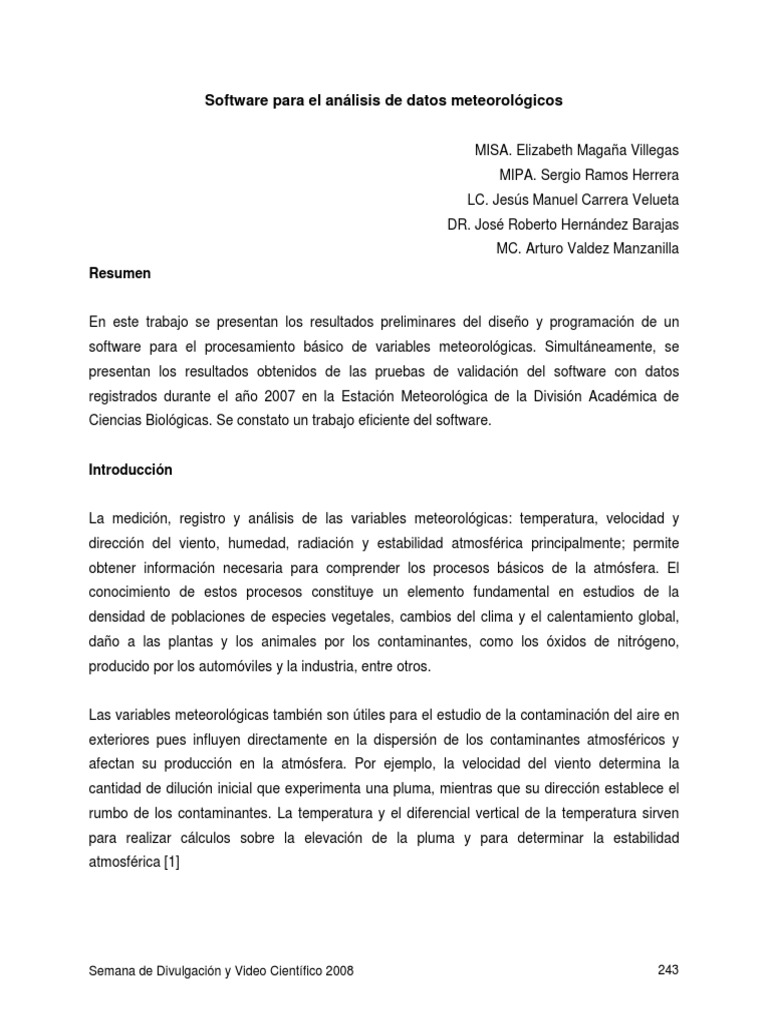 software para el procesamiento bsico de variables meteorolgicas. Simultneamente, se