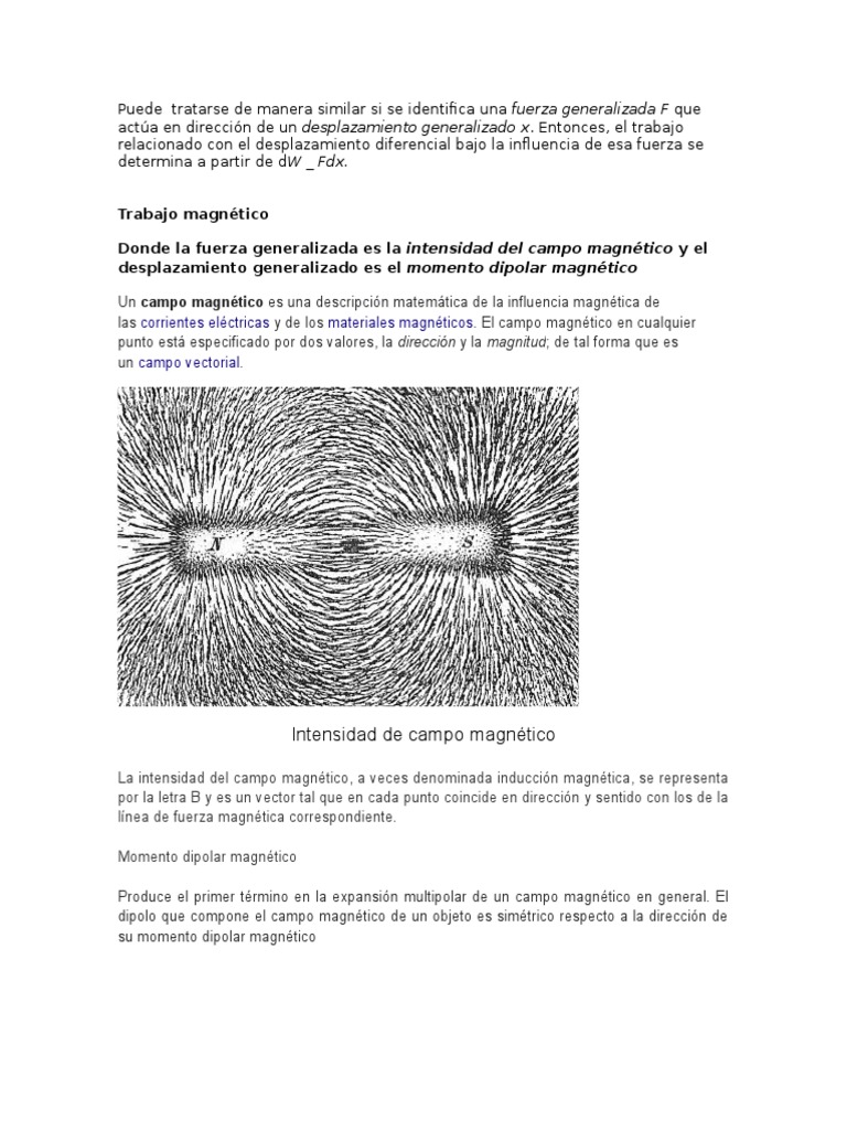 Donde la fuerza generalizada es la intensidad del campo magntico y el