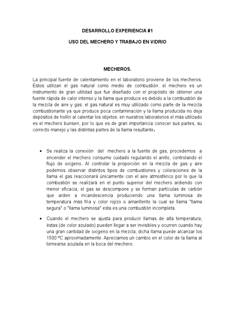 USO DEL MECHERO Y TRABAJO EN VIDRIO