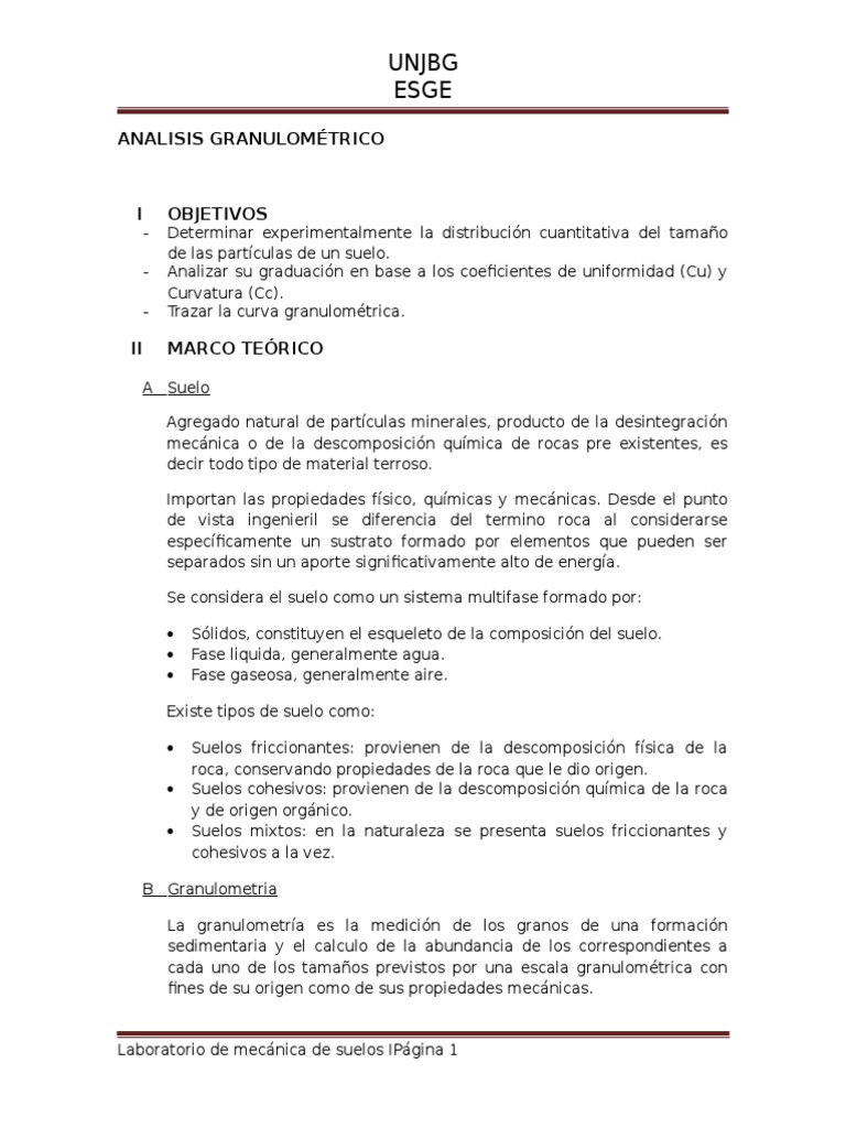 Analizar su graduacin en base a los coeficientes de uniformidad (Cu) y