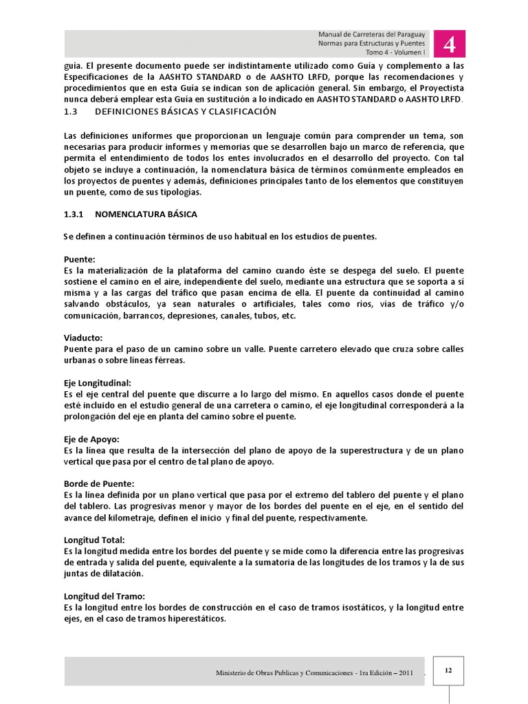 los proyectos de puentes y adems, definiciones principales tanto de los elementos que constituyen
