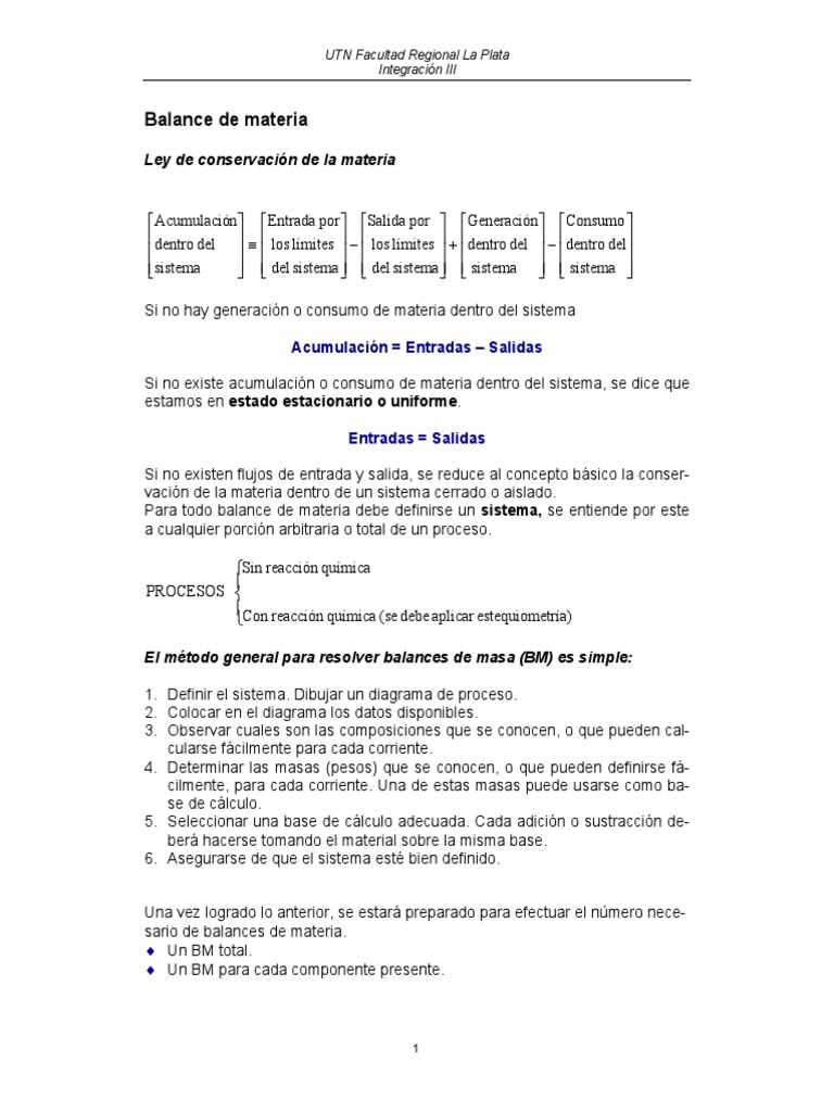 Una vez logrado lo anterior, se estar preparado para efectuar el nmero necesario de balances de materia.