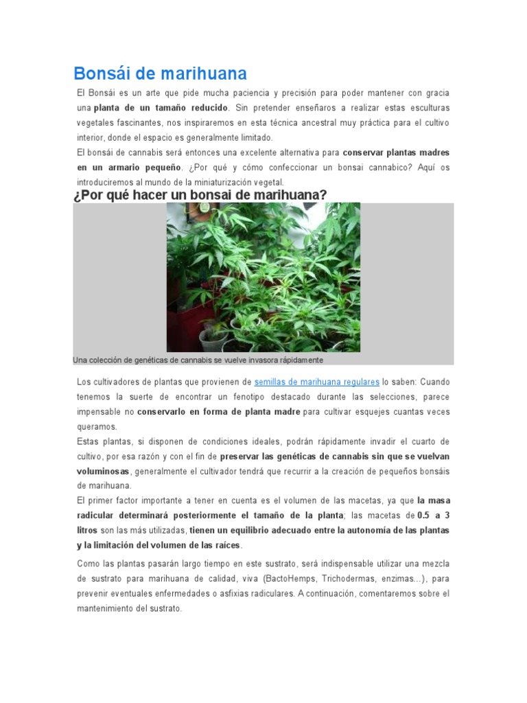 en un armario pequeo. Por qu y cmo confeccionar un bonsai cannabico? Aqu os