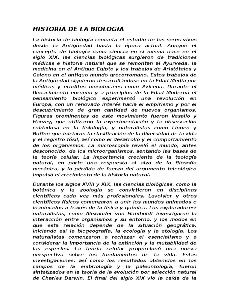 La historia de biologa remonta el estudio de los seres vivos