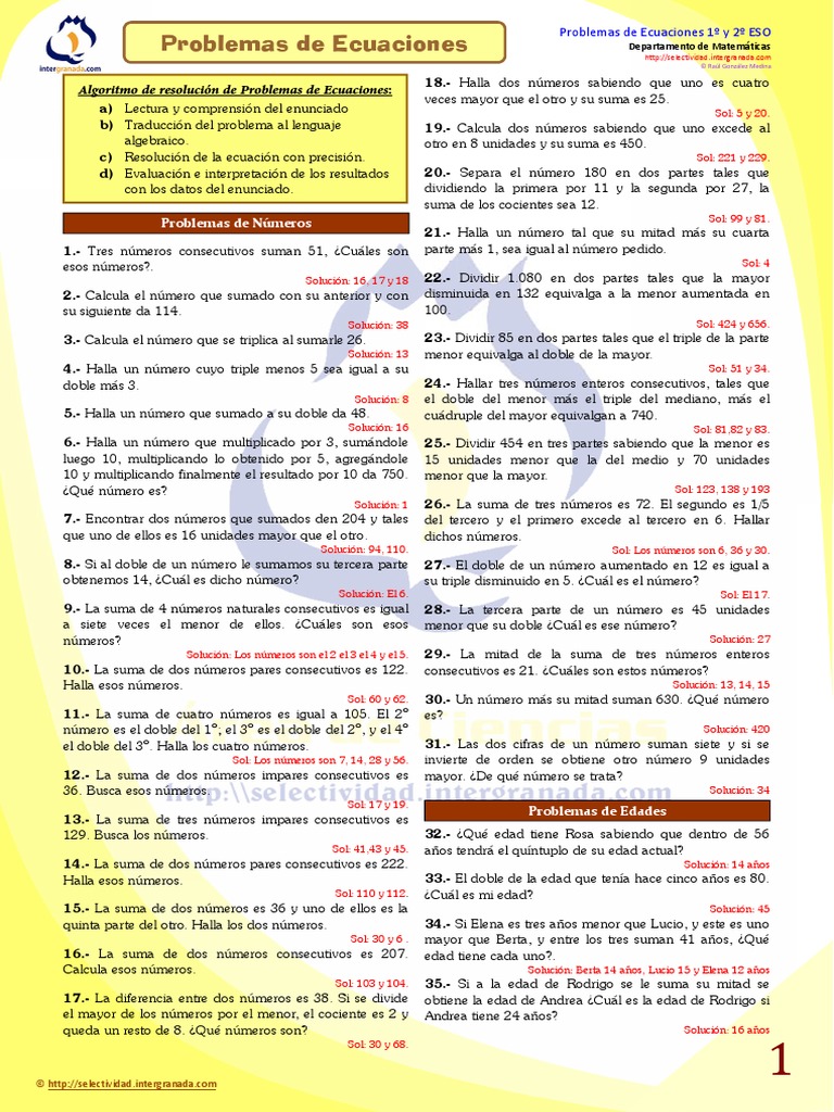 1.- Tres nmeros consecutivos suman 51, Cules son