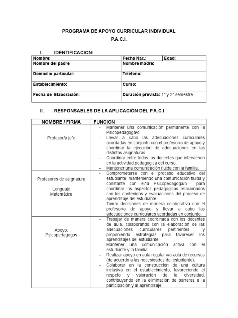 PROGRAMA DE APOYO CURRICULAR INDIVIDUAL