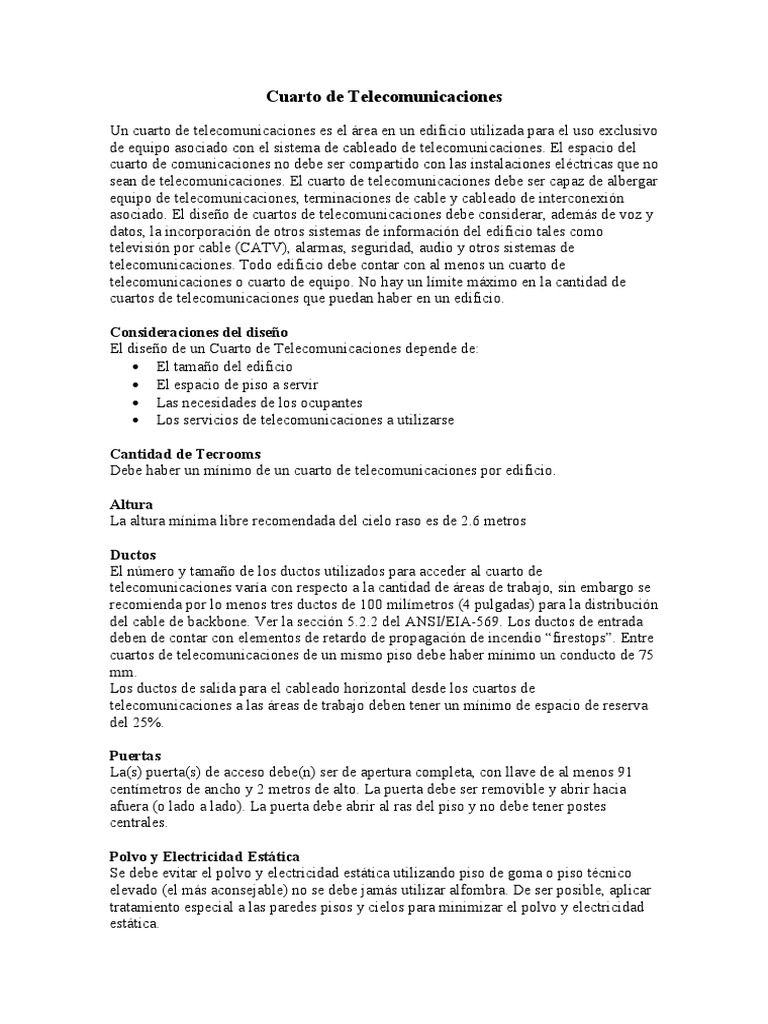 asociado. El diseo de cuartos de telecomunicaciones debe considerar, adems de voz y