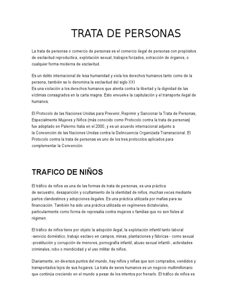 La trata de personas o comercio de personas es el comercio ilegal de personas con propsitos