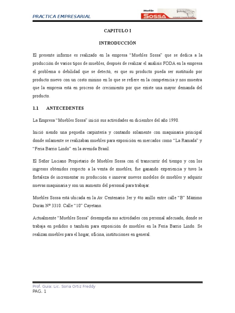 El presente informe es realizado en la empresa Muebles Sossa que se dedica a la