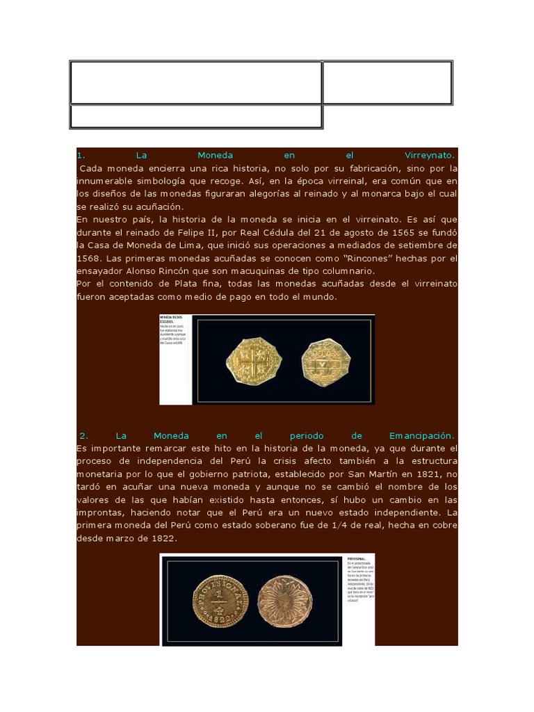 En nuestro pas, la historia de la moneda se inicia en el virreinato. Es as que