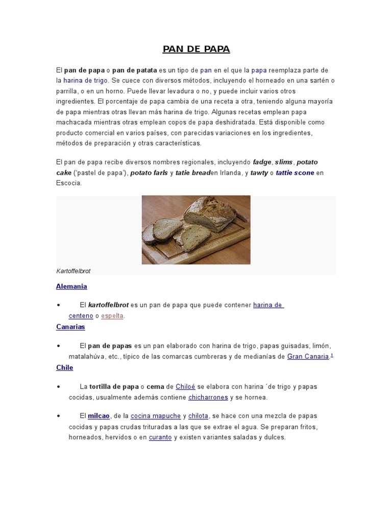 de papa mientras otras llevan ms harina de trigo. Algunas recetas emplean papa