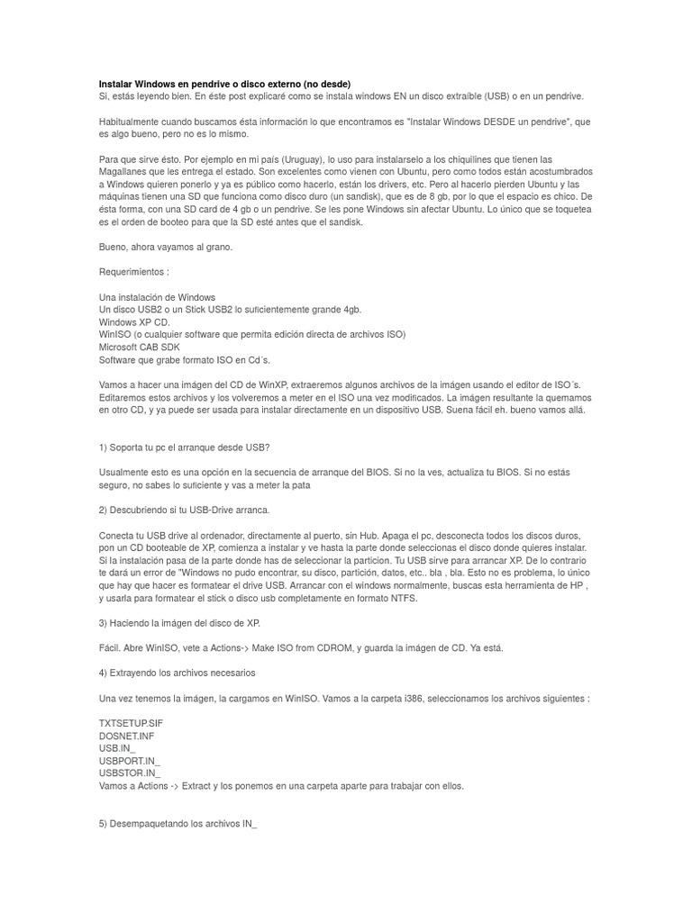 Habitualmente cuando buscamos sta informacin lo que encontramos es "Instalar Windows DESDE un pendrive", que