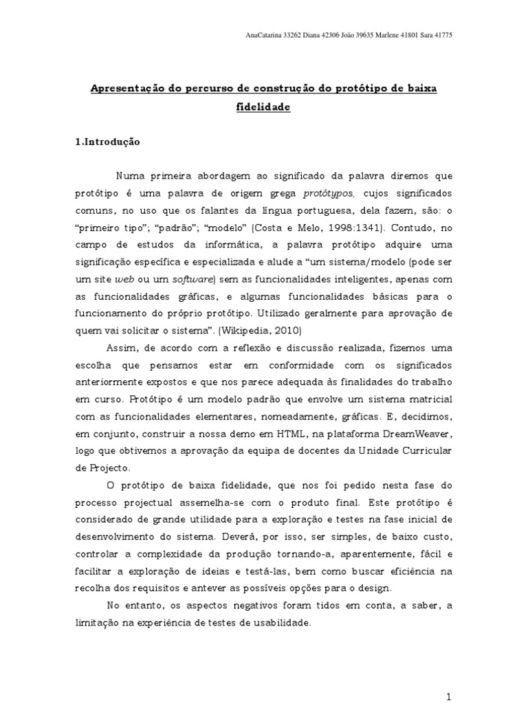 Apesar de nesta altura ser pedido um protótipo de baixa fidelidade,