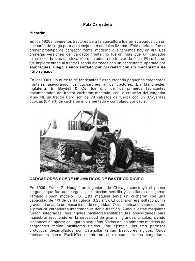 primer prototipo del cargador frontal moderno que tenemos hoy en da. Las