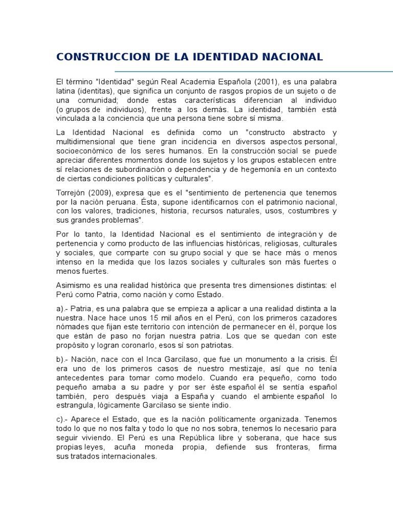 CONSTRUCCION DE LA IDENTIDAD NACIONAL