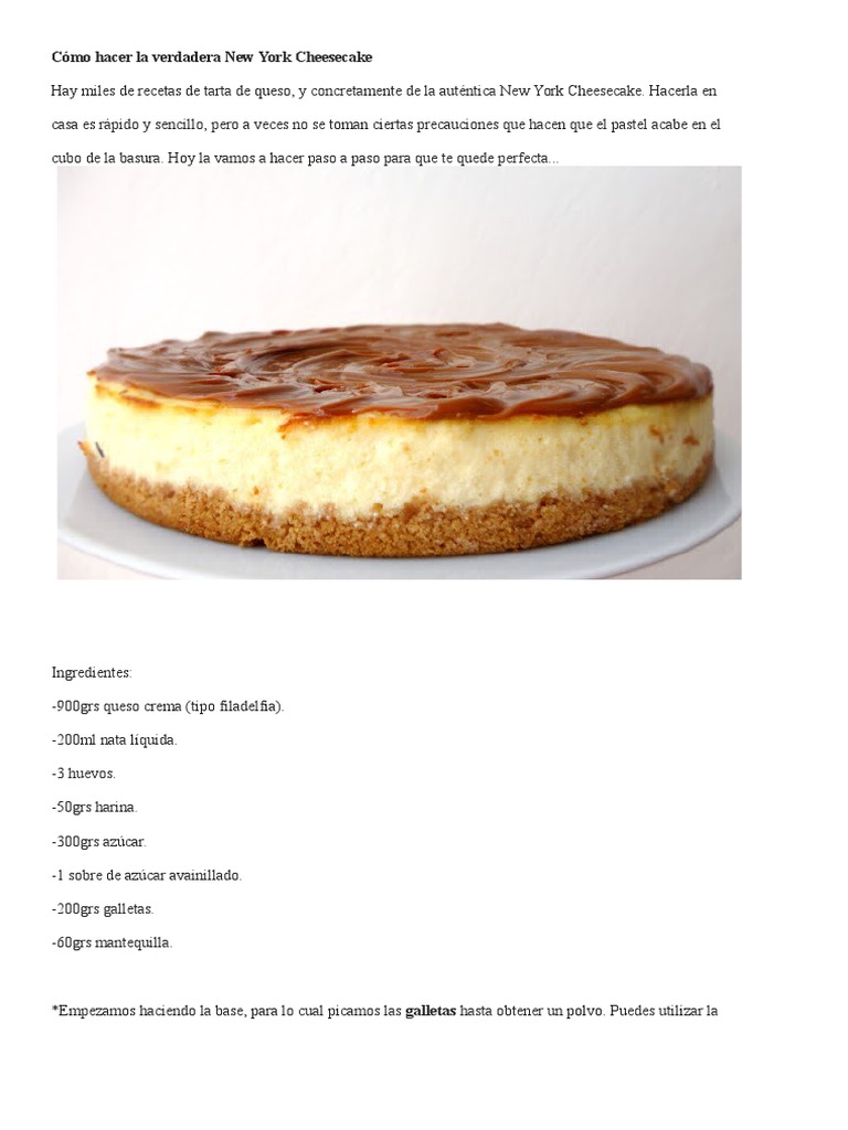 Hay miles de recetas de tarta de queso, y concretamente de la autntica New York Cheesecake. Hacerla en