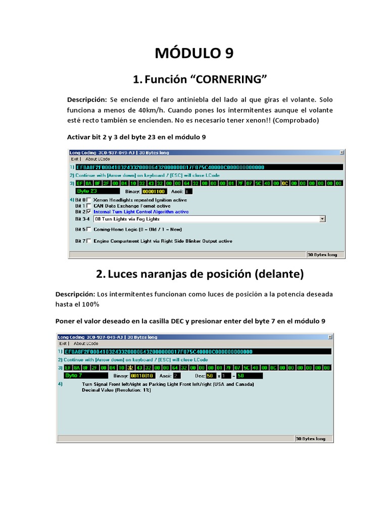 Activar bit 2 y 3 del byte 23 en el mdulo 9