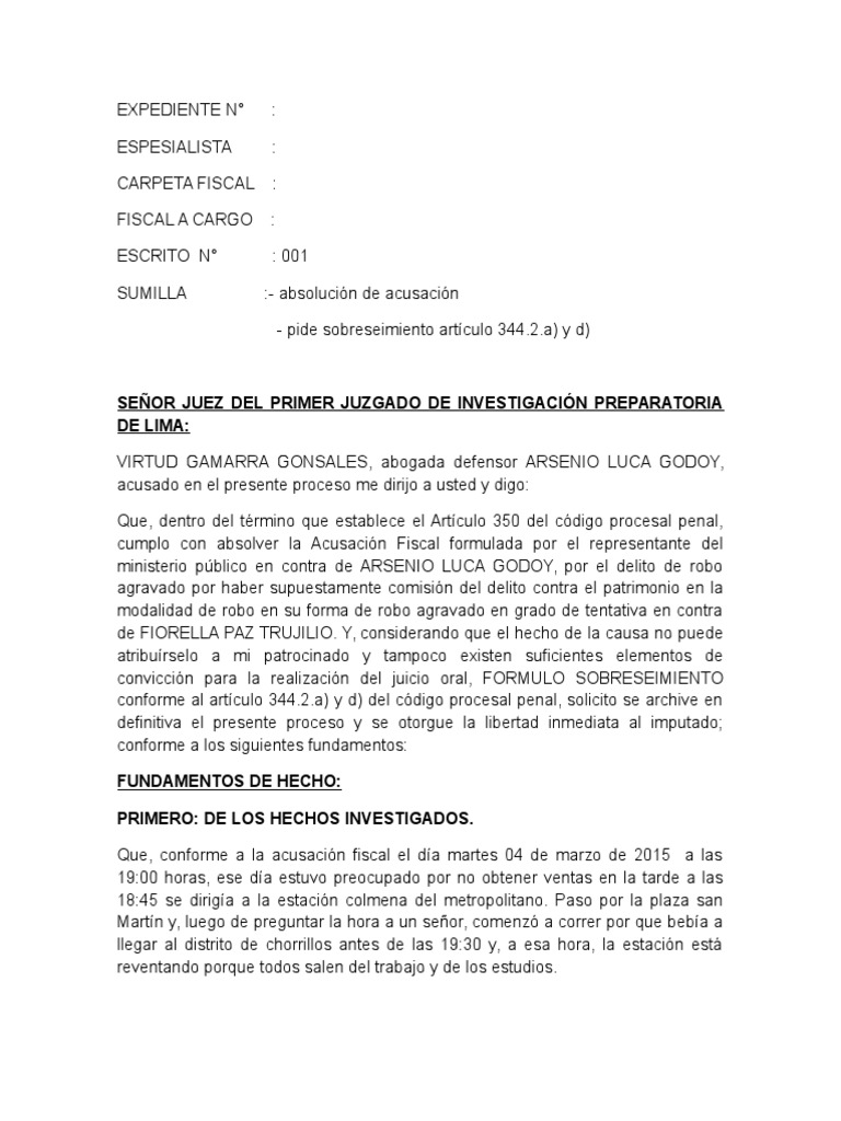 conforme al artculo 344.2.a) y d) del cdigo procesal penal, solicito se archive en