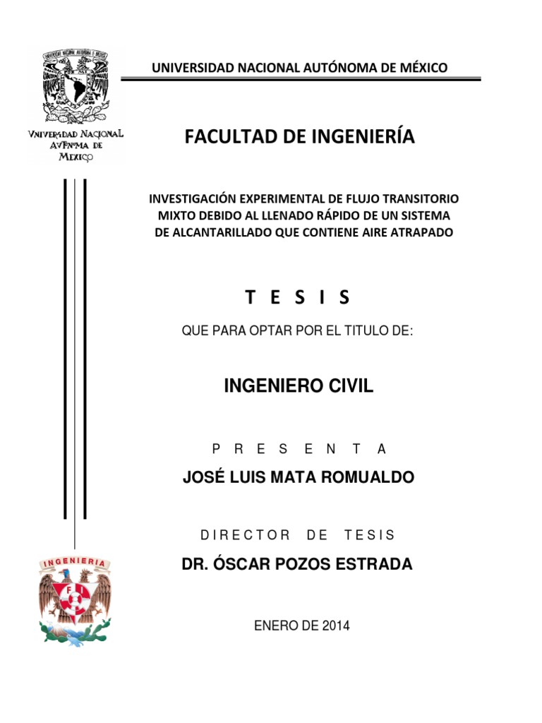 Gonzlez. C.A. y Pozos. O. (2000). Anlisis Experimental del Ingreso de Aire en un Acueducto. Tesis.