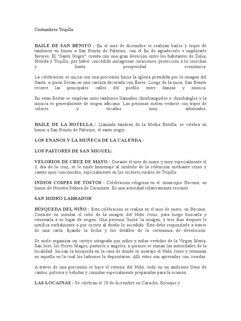 Folklore: El estado Trujillo posee un conjunto de manifestaciones populares ligadas al