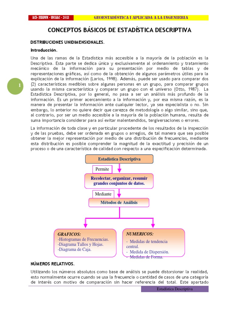 2013 36 GEOESTADÍSTICA I APLICADA A LA INGENIERIA 18 17 14 13 16 12 19 21 20 16 20 19 18 19 20 17 14 18 17 14 14 14 15 14 13 17 20 18 21 12 20 14 19 22 25 19 21 22 19 28 21 21 20 24 23 24 24 23 26 26 25 20 19 19 22 25 20 21 20 22 21 26 28 23 23 27 23 26 26 19 24 25 28 22 20 28 21 28 24 29 23 25 27 25 21 20 21 25 26 20 25 25 24 29 20 28 22 23 26 26 23 22 24 21 26 25 29 27 22 24 21 23 20 27 25 22 25 25 27 18 20 20 26 26 20 26 22 21 25 25 18 21 21 21 22 23 20 26 27 18 19 22 23 21 23 21 25 18 26 19 20 25 23 22 25 25 25 21 27 23 21 24 27 23 20 21 26 25 19 20 28 23 27 26 27 20 26 24 25 23 26 23 28 26 22 20 24 27 25 19 19 26 24 21 26 18 22 23 18 23 19 19 21 22 18 18 19 19 21 23 20 19 22 23 23 21 21 22 24 22 22 25 24 19 19 19 19 24 23 20 24 25 22 25 21 19 23 20 21 19 22 27 22 28 24 22 22 23 25 26 22 24 26 23 25 24 26 21 26 23 24 20 25 23 25 28 28 24 20 24 27 28 21 18 13 17 18 16 19 18 14 13 20 17 21 21 18 21 22 22 16 13 21 17 15 19 21 17 20 21 22 17 20 17 15 15 15 13 14 20 18 20 18 17 19 19 14 13 12 12 17 12 12 19 Comunidad 8 28 23 28 23 27 22 20 25 23 20 22 19 21 20 20 Comunidad 9 24 24 27 22 29 20 23 25 27 22 22 28 23 27 27 Comunidad 10 26 20 25 26 20 20 27 25 22 22 26 27 22 23 21 Comunidad 11 27 26 27 24 23 19 27 28 26 27 19 24 21 28 28 Comunidad 12 20 20 23 25 19 21 19 24 27 23 24 26 18 19 19 Comunidad 13 23 27 23 24 24 23 28 26 27 24 21 22 26 26 25 Comunidad 14 17 15 18 19 21 17 17 16 18 14 17 19 17 13 17 Comunidad 15 20 15 18 14 14 20 15 21 13 13 13 19 18 18 19 15 12 19 18 13 13 19 21 16 15 14 12 15 13 12 17 21 21 23 25 26 27 26 23 27 28 19 21 24 25 19 23 25 26 21 19 25 24 28 24 27 26 19 19 24 19 26 26 21 23 21 20 25 27 19 28 20 26 21 29 24 24 24 22 27 26 26 21 22 25 24 27 21 28 23 23 27 28 29 21 23 24 26 27 28 28 20 21 27 29 22 26 24 22 26 26 23 23 20 23 20 18 26 18 18 27 23 24 21 21 25 24 22 23 23 24 25 20 22 21 23 18 27 23 21 22 19 26 26 21 24 27 23 25 26 21 19 26 26 26 22 23 26 22 26 27 25 21 23 19 23 19 26 20 22 20 20 27 23 24 21 24 23 23 20 22 25 23 21 26 20 23 24 20 19 23 25 20 19 27 18 23 19 19 26 26 25 23 18 20 18 20 19 23 21 25 21 23 21 26 20 25 22 18 20 23 24 18 27 24 22 21 19 22 23 22 27 19 27 25 26 21 28 28 19 20 22 26 27 21 21 25 20 22 21 24 19 24 23 20 20 19 21 28 19 20 25 24 19 20 28 27 25 28 20 19 27 17 22 22 20 16 21 19 17 21 14 20 13 14 15 22 22 14 13 13 13 21 21 18 19 15 18 16 14 19 15 13 19 13 18 18 22 14 19 16 17 Estadística Descriptiva .ACE.UNSAAC .FIEEMM .