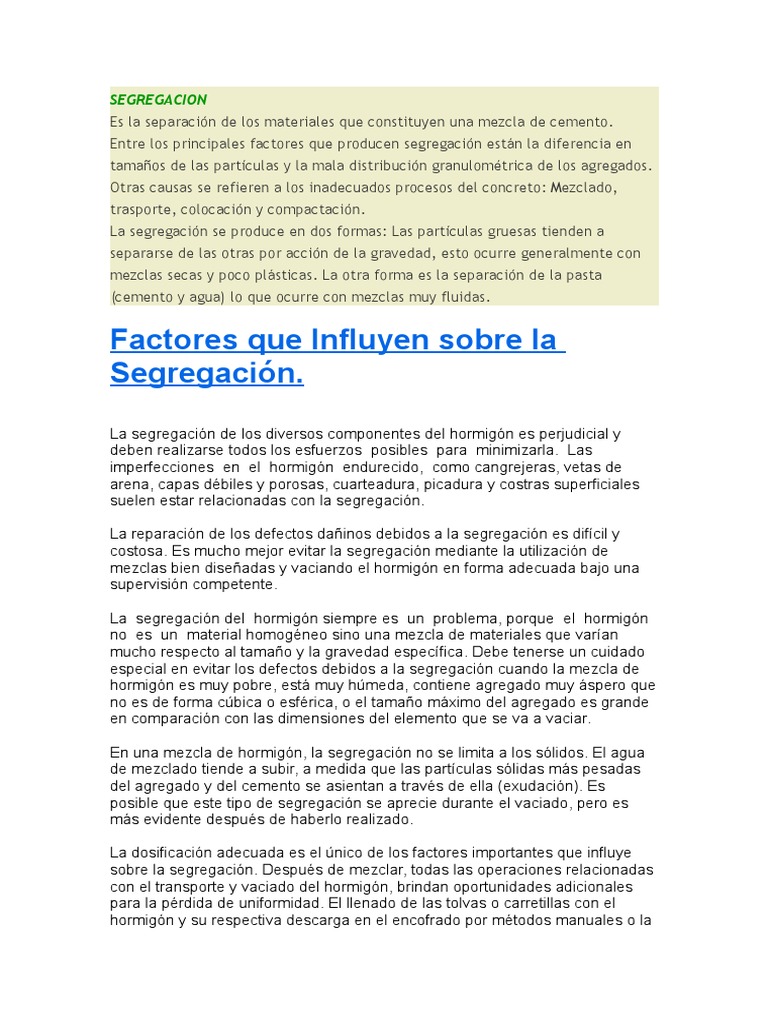 La segregacin de los diversos componentes del hormign es perjudicial y