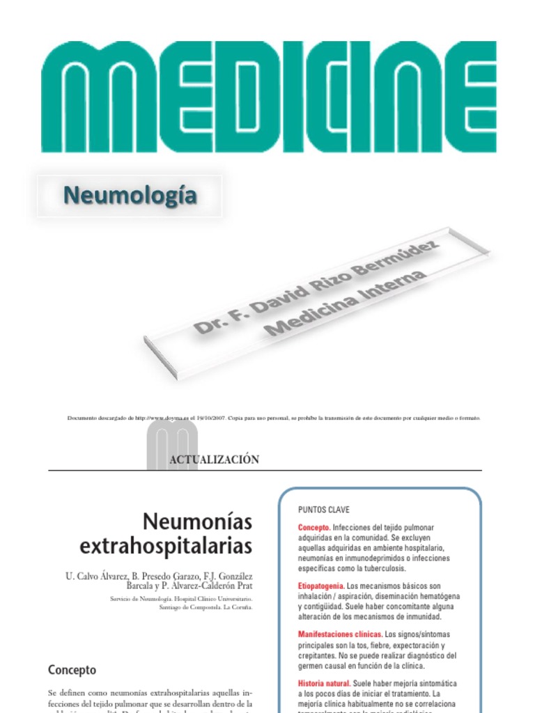 salud o asilos, o se encuentren dentro de un rgimen de hospitalizacin domiciliaria. Esta poblacin inicialmente no debera considerarse neumona adquirida en la comunidad
