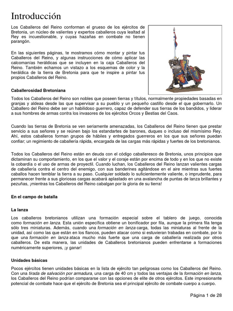 puede ser un poco desalentador. Afortunadamente, Ejrcitos Warhammer: Bretonia contiene varias pginas