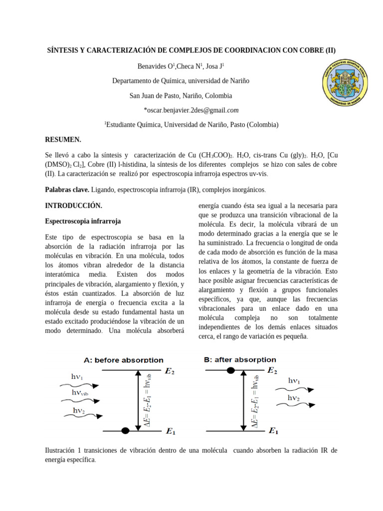 Palabras clave. Ligando, espectroscopia infrarroja (IR), complejos inorgánicos.